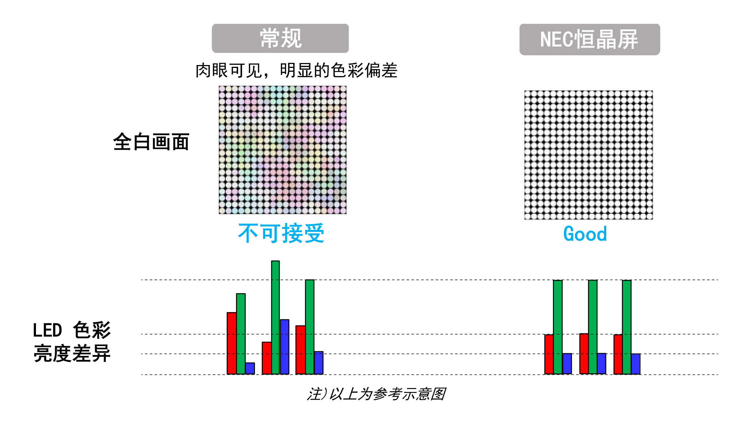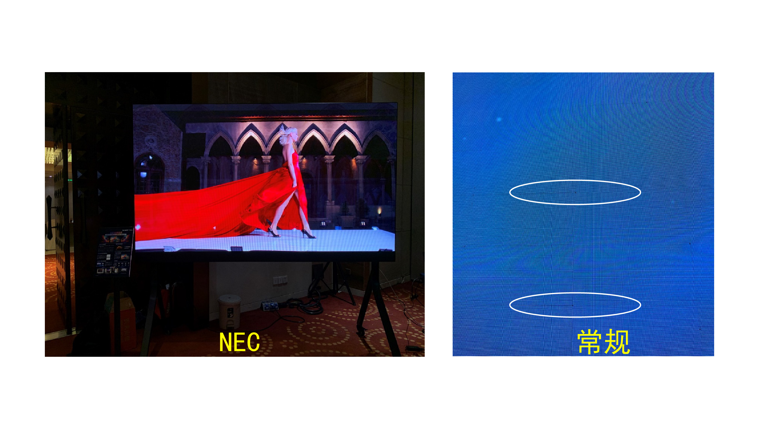 NEC恒晶屏采用全倒裝COB和SMD封裝技術(shù),覆蓋0.9-3.8mm點(diǎn)距產(chǎn)品,亮度高達(dá)1200cd/㎡。