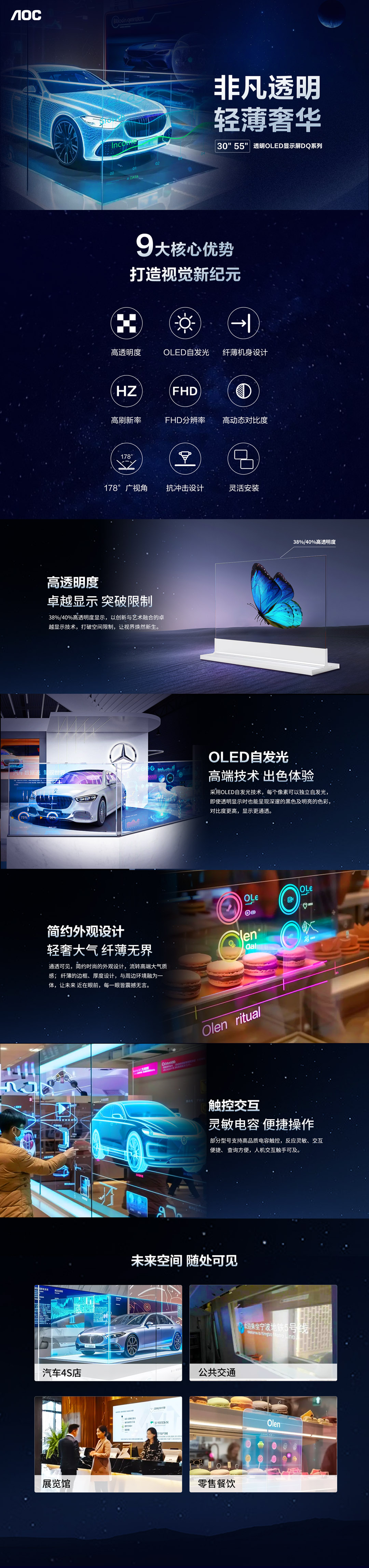 基于OLED自發光技術優勢,透明度達到40%,非凡透明輕薄奢華